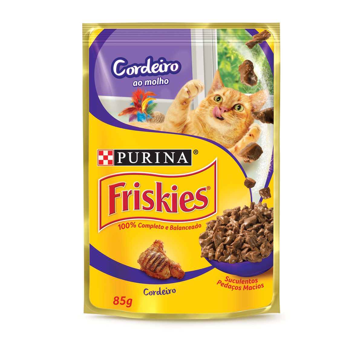 Ração Úmida para Gato Adulto Purina Friskies Cordeiro ao Molho Sachê 85g