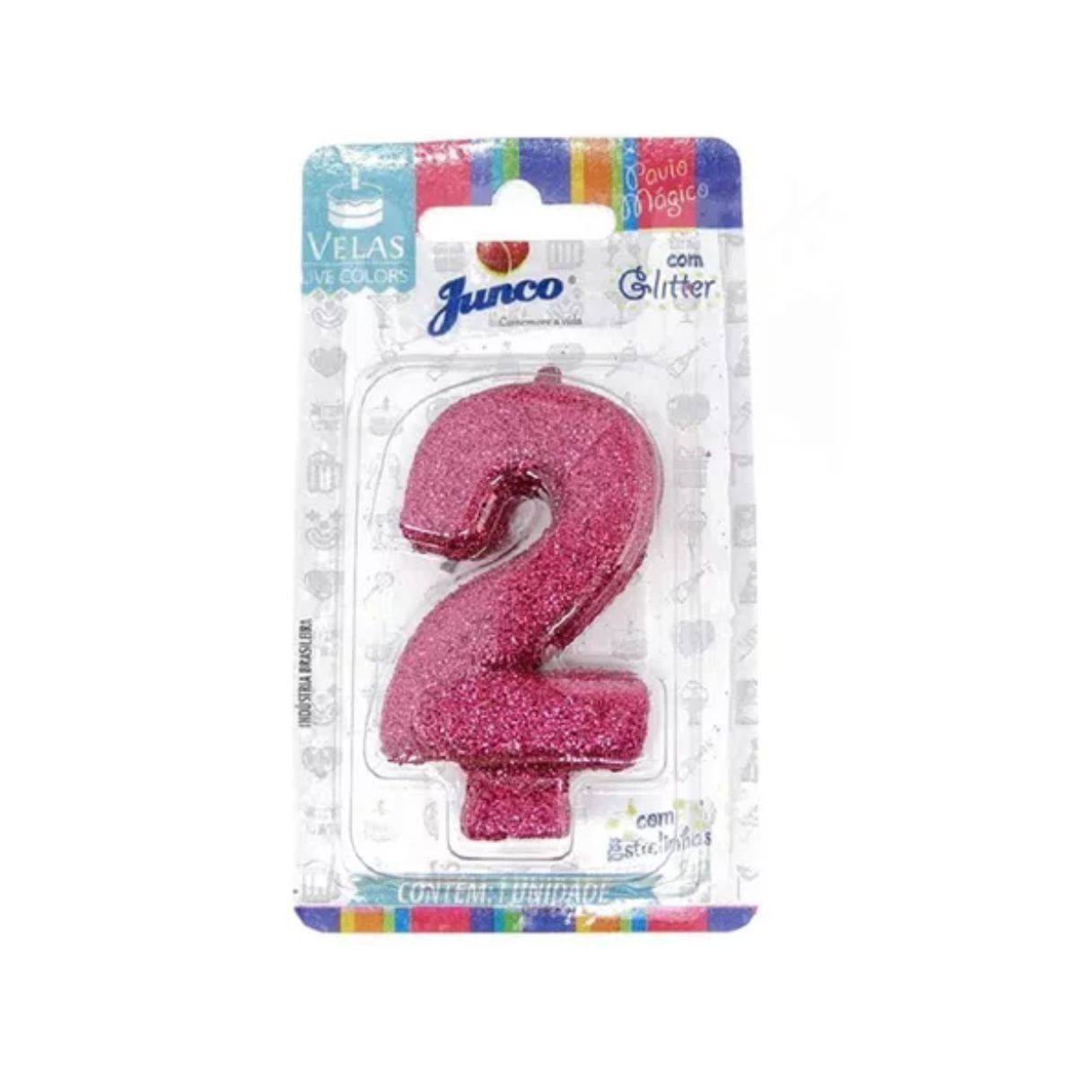 Vela de Aniversário Live Colors com Glitter Junco N.2 Pink Unidade